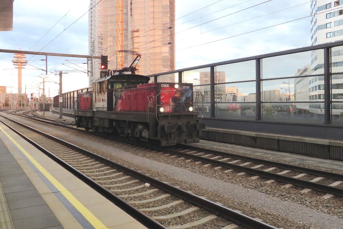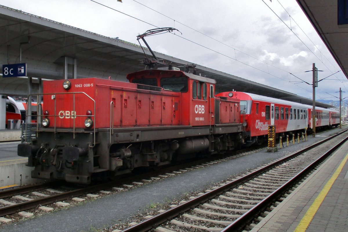 1063 004 mit einem Güterzug aus Lenzing am 16.08.2013 bei der Durchfahrt in Attnang-Puchheim.
