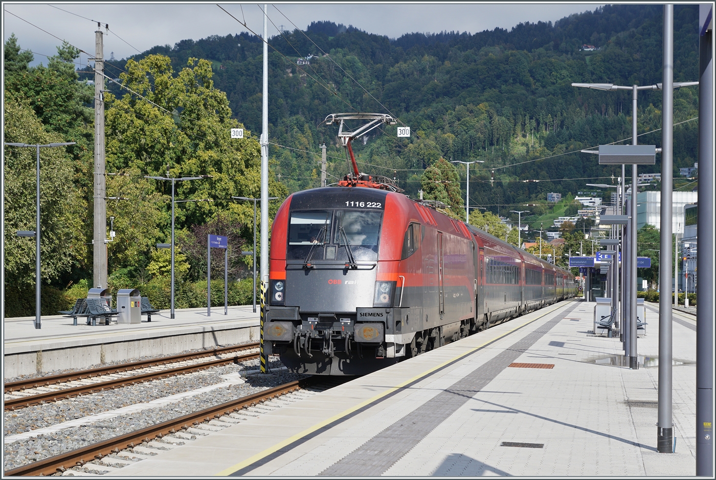 1116 273 mit einem REX mit ziel Lindau Insel (ehemals Lindau Hbf) bei der Durchfahrt am Bahnübergang Aeschacher Ufer am 24.3.21