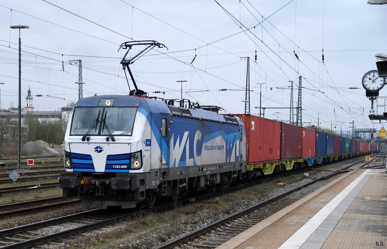 WLC 1193 980 fuhr mit einen containerzug durch regensburg,17.04.23
