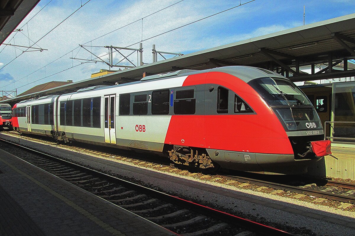 Diesel Triebzug 5022 003-5, setzt nach einem kurzen Halt im Bahnhof von Graz seine Fahrt fort. 02.06.2023