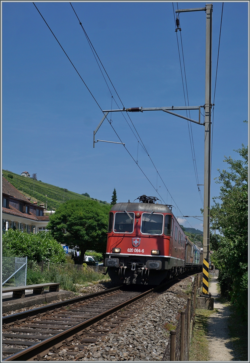 Beim Château de Chillon ist die SBB Re 6/ 11678 (Re 620 078-6 ) "Bassersdorf" als Lok Zug auf dem Weg in Richtung Lausanne.