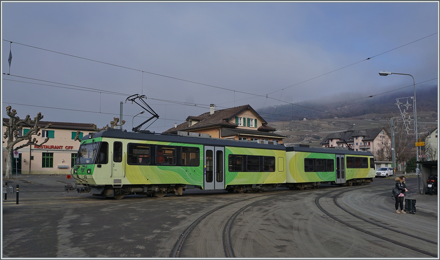 Der TPC AOMC/ASD Beh 2/6 ist als Regionalzug R71 436 oberhalb von Aigle auf dem Weg nach Les Diablerets. 9. Februar 2026