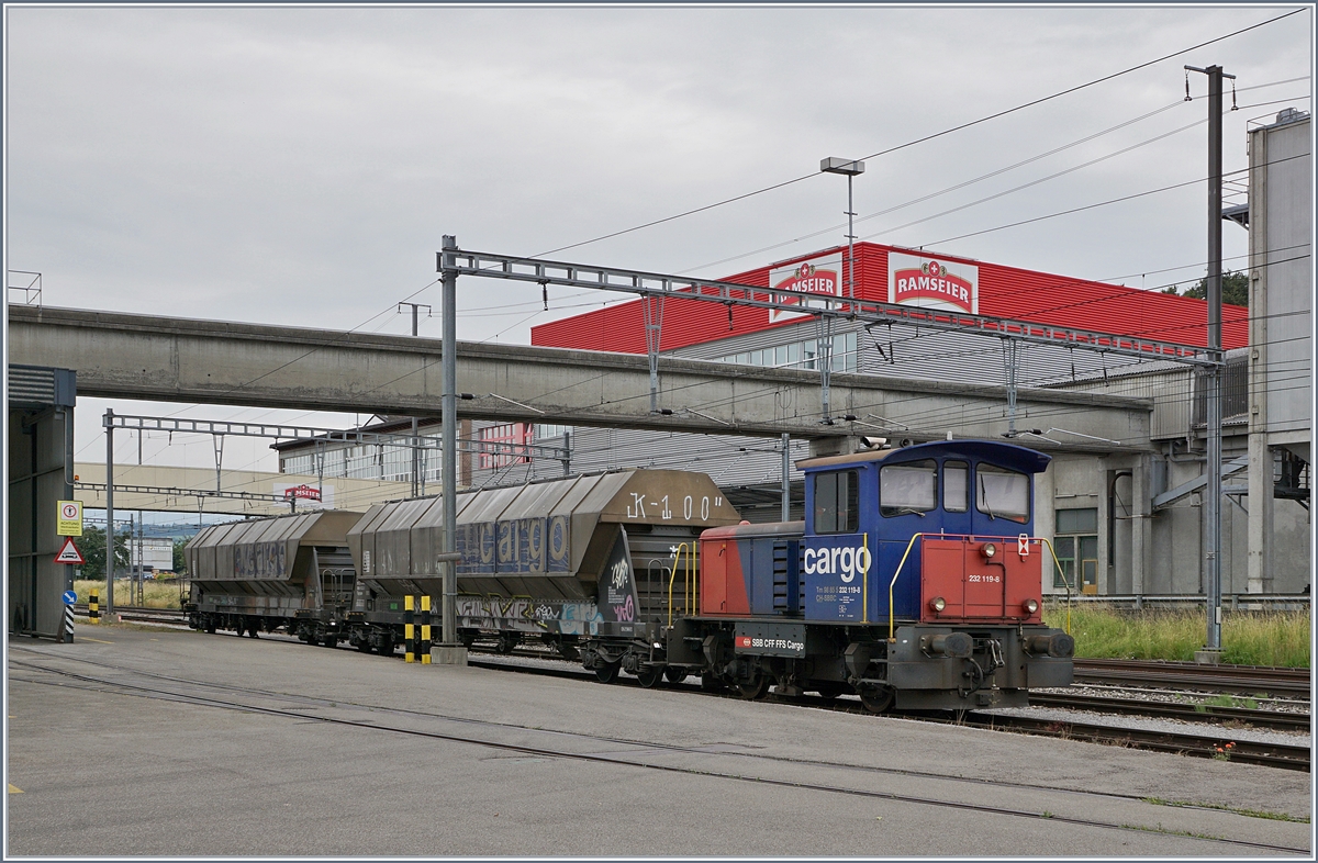 Der SBB Cargo Tm 232 119-8 wartet mit zwei Getreidesilowagen in Sursee auf seinen nächsten Einsatz.