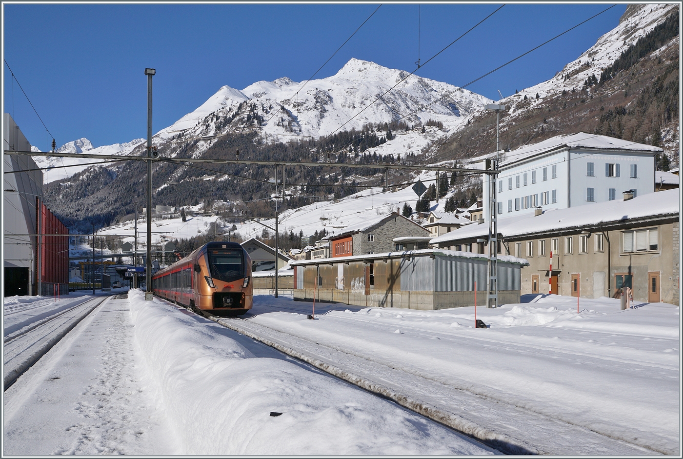 Der SOB RABe 526 116 in Richtung Basel und verlässt Airolo.