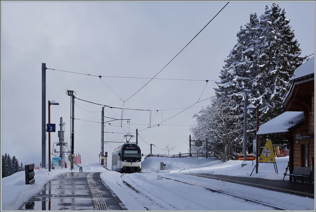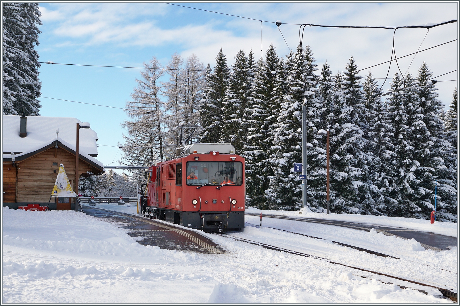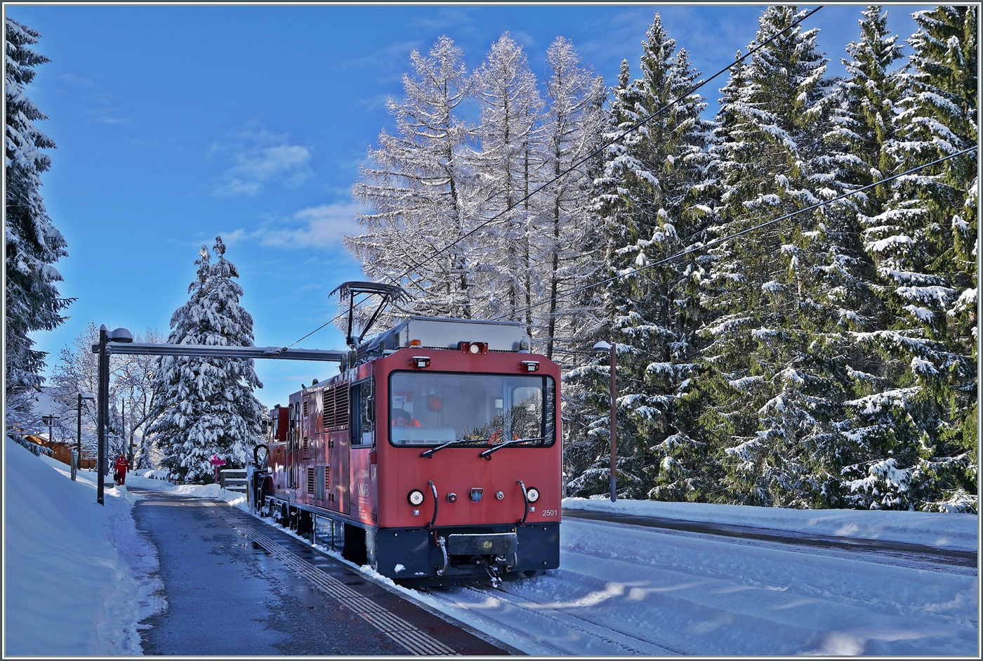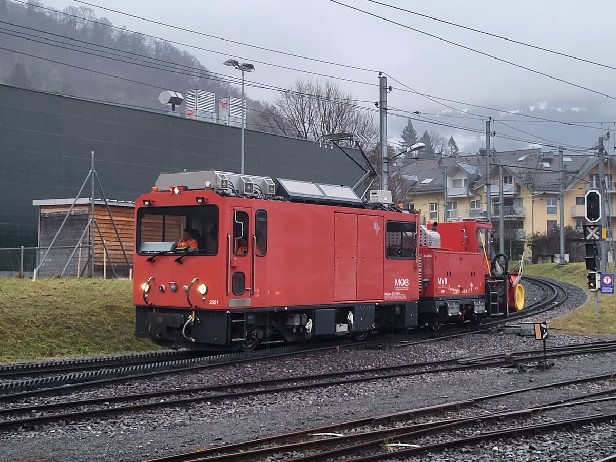 Die MOB HGem 2/2 2501 (ex CEV MVR) verlässt Vevey in Richtung Blonay.