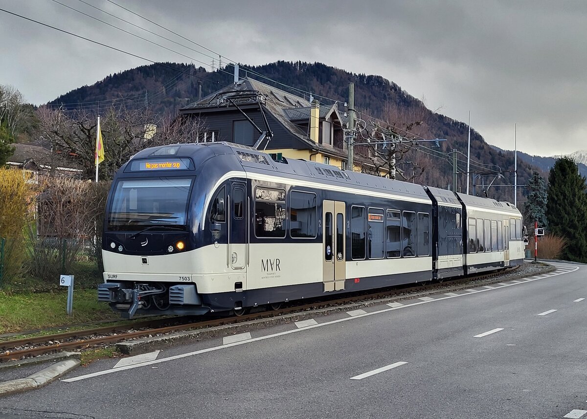 Nach getaner Arbeit ereicht die MOB HGem 2/2 2501 mit dem X464 den Bahnhof von Blonay.