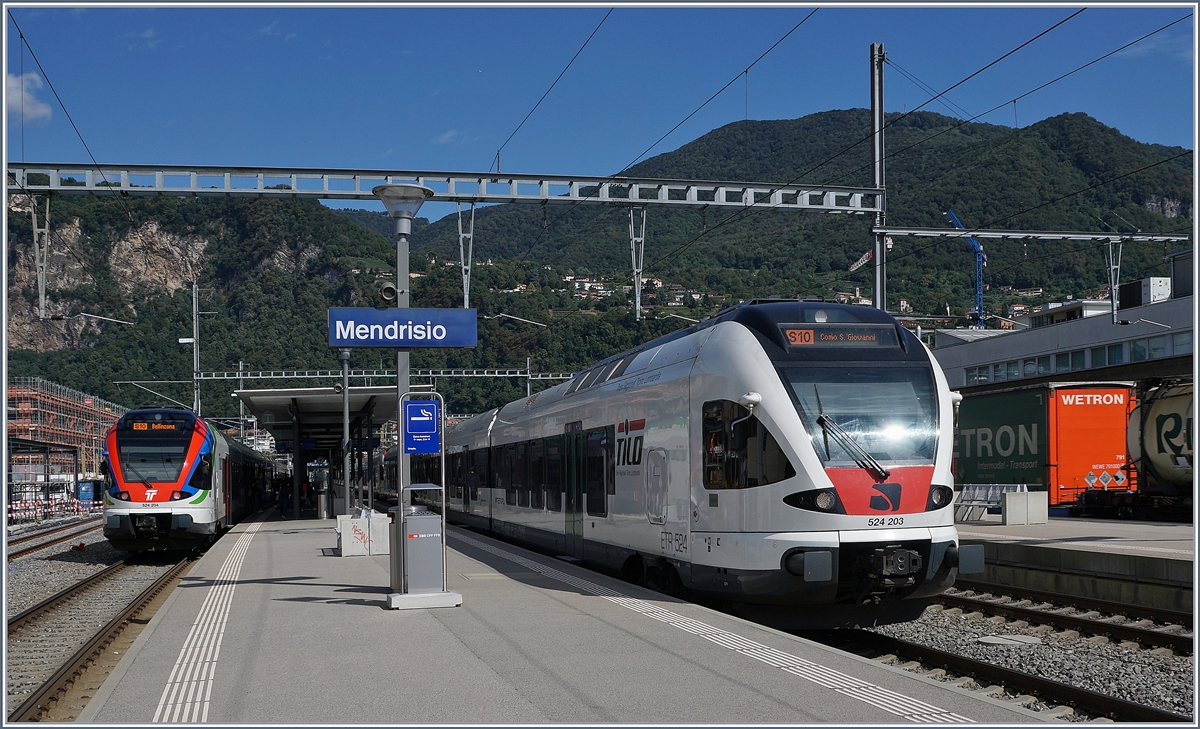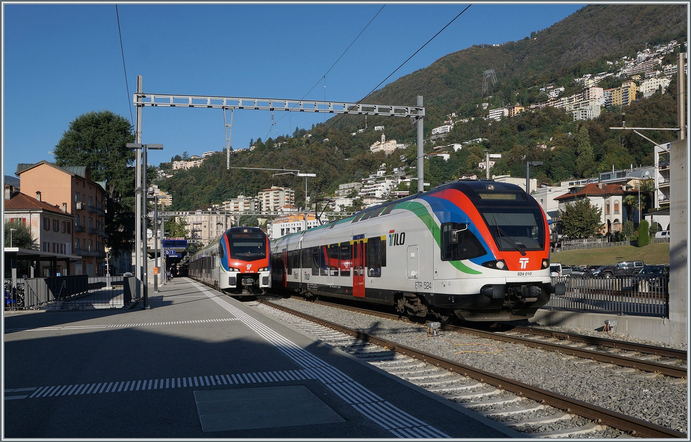 Tilo RABe 524 Triebzüge in Mendrisio, damals noch in der alten Farbgebung.