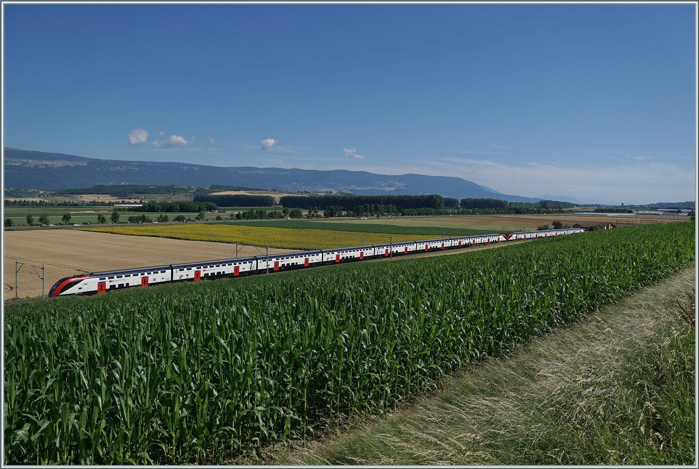 Ein SBB RABDe 502 "Twindexx" als IR 15 von Gneève-Aéroport nach Luzern erreicht den Bahnhof vn Genève.