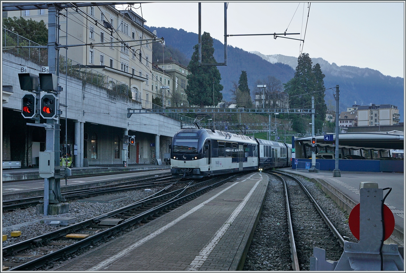 Seit alle vier GoldenPass Express Zugspaare verkehren sind die drei MOB Ge 4/4 Serie 8000 gut beschäftig, so erstaunt es, als ich die MOB Ge 4/4 8002 am Schluss des Regionalzugs 2212 sah. (An der Spitze war eine ABe 4/4 Serie 9000 eingereiht).