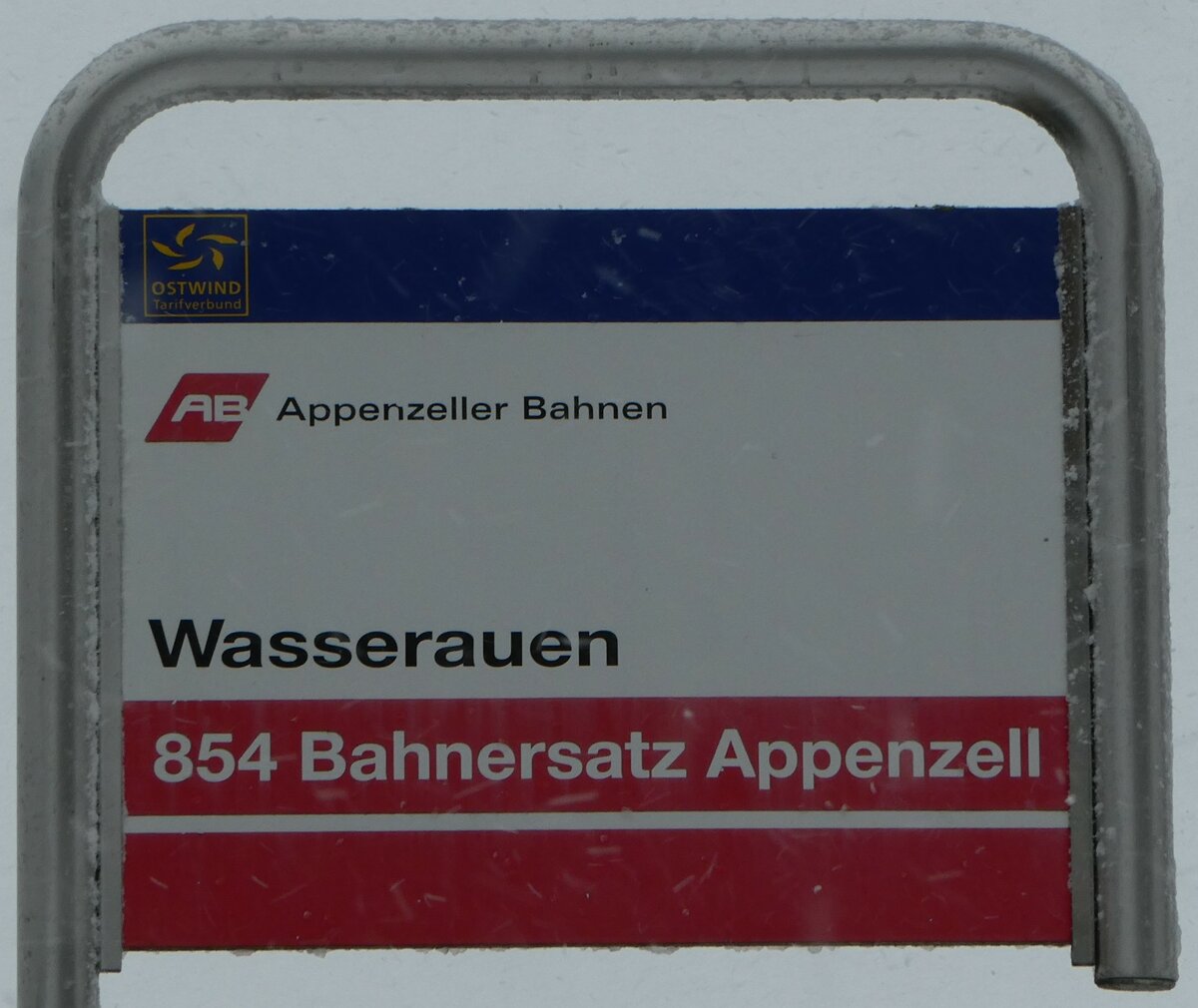 (257'304) - AB-Haltestellenschild - Wasserauen, Bahnhof - am 28. November 2023