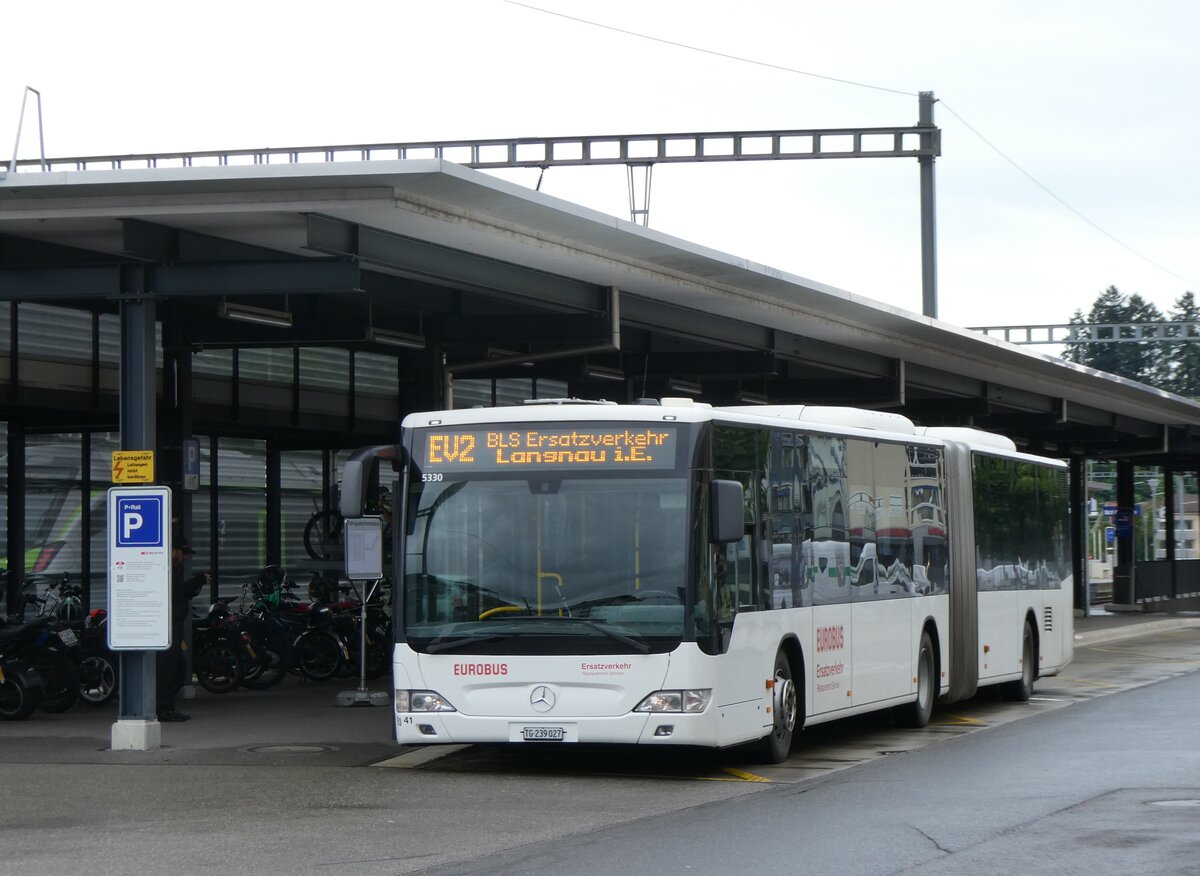(273'830) - Eurobus, Arbon - Nr. 41/TG 239'027/PID 5330 - Mercedes (ex Nr. 14) am 11. April 2025 beim Bahnhof Schüpfheim