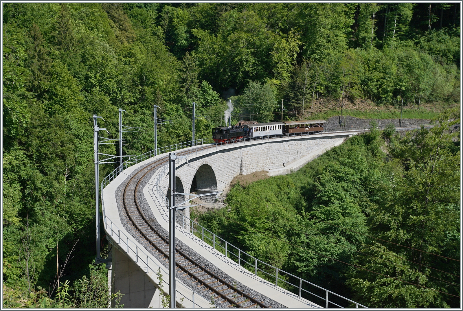 Die SEG G 2x 2/2 105 wird bekohlt, die SBB G 3/4 der wartet bereits und im Hintergrund dampft die E 164 von "La Traction".