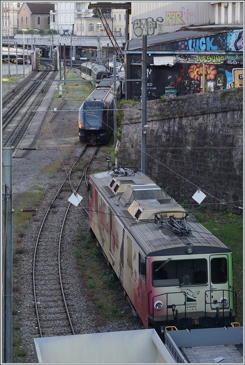 Der Zweck der Fahrt der GDe 4/4 "Interlaken" nach Blonay: der CEV Beh 2/4 muss nach Vevey geschleppt werden.