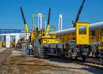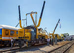 Die Aem 940 030-0 (Aem 91 85 4 940 030-0 CH-SBBI) der SBB Infrastruktur ist am 28. Mai 2023 mit einem Bauzug (Materialförder- und Siloeinheiten) beim Bahnhof Vevey.