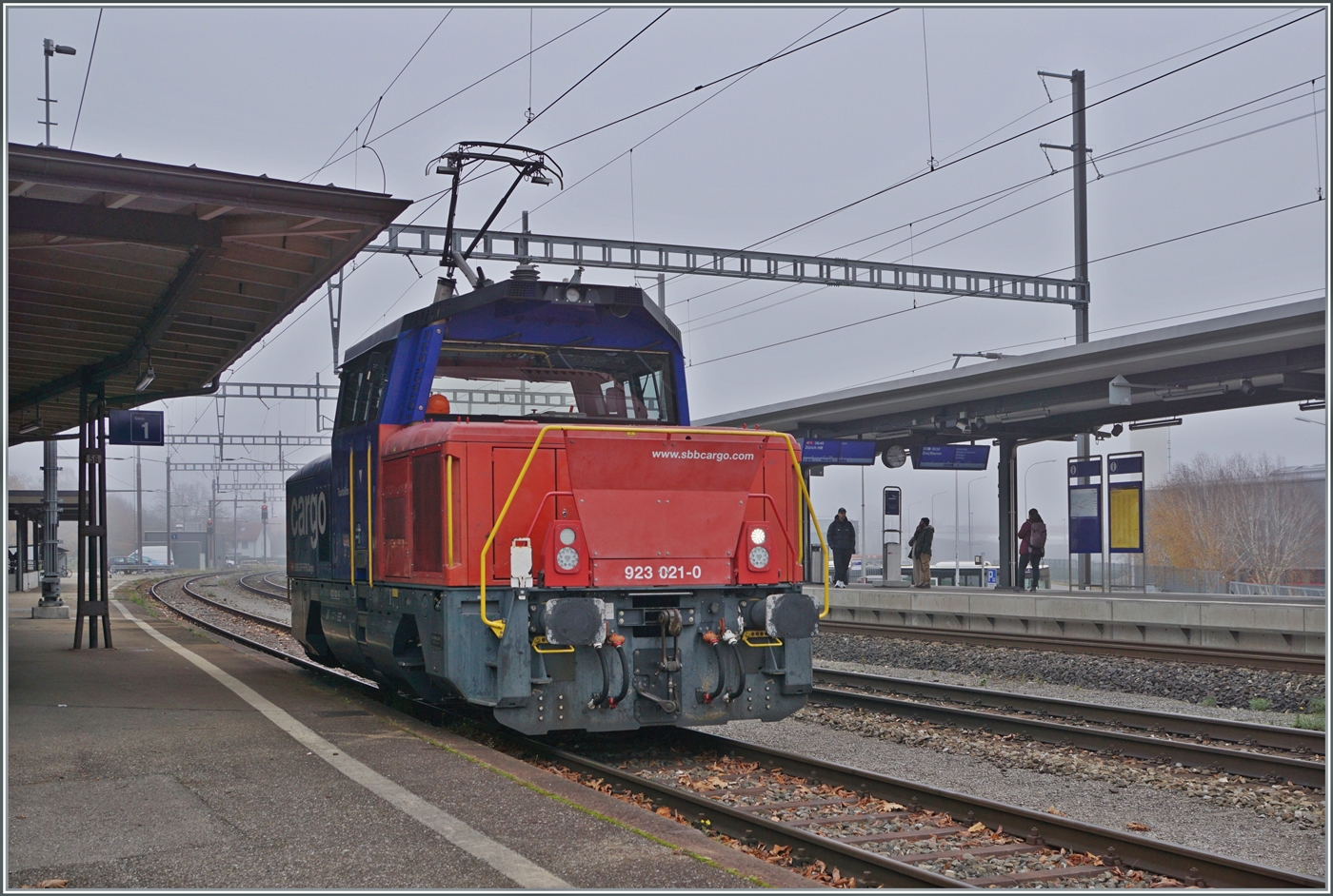 Die SBB Cargo Eem 923 021-0 wartet in Oensingen auf einen nächsten Einsatz. 8. Nov. 2025