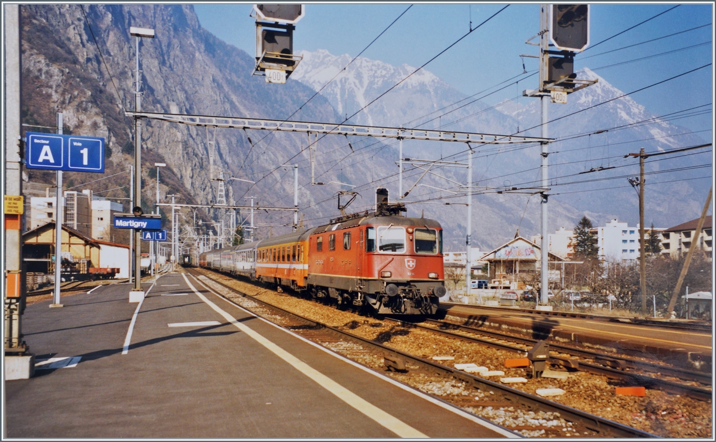 Die SBB Re 4/4 II 11111 mit ihrem IR 2328 Locarno - Arth-Gloldau kurz nach der Abfahrt in Locano.