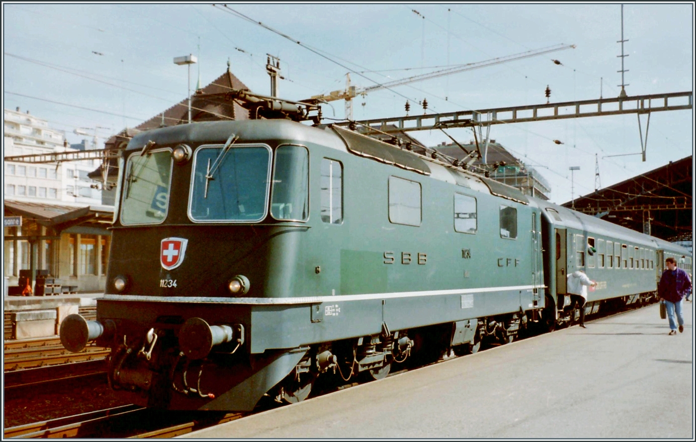 Ein Bild welches vor gut zwanzg-dreissig Jahren hätte entstanden sein können: die Re 4/4 II 11161 wartet mit einem Gotthardschnellzug in Göschenen auf die Abfahrt Richtung Luzern oder Zürich. In Wirklichkeit brachte die Re 4/4 II 11161 einen Fotografenzug in Parlellfahrt mit dem "Elefanten-Zug" nach Göschenen und ist nun dabei, für die Weiterfahrt, das nötige Manöver vorzunehmen.
