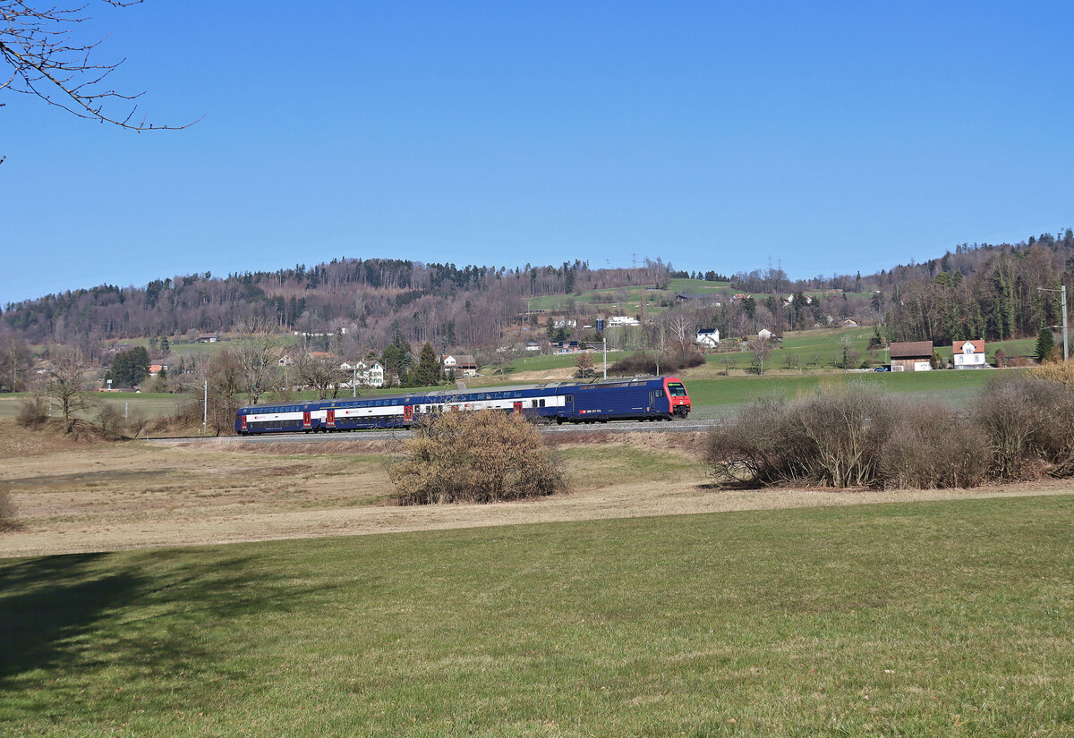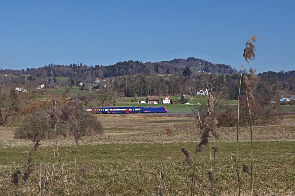 Ersatz für NPZ 560(Modernisierung)ZVV Dosto Chur-Ziegelbrücke auf der Rheinbrücke bei Bad Ragaz.Der Zug hat übrigens auf beiden Seiten jeweils eine andere Farbgebung.27.03.12