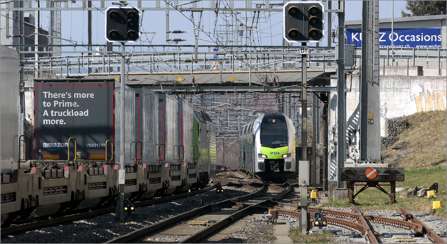 Infolge verspäteter Lieferung der "Lötschberger" mussten "NINAs" einspringen, welche wiederum durch andere Fahrzeuge ersetzt werden musste, wie hier die zu sehende S1 Thun - Bern - Fribourg welche aus der BLS Re 465 003 und einem EW I/II Pendelzug besteht und bei Kiesen in Richtung Bern unterwegs ist.