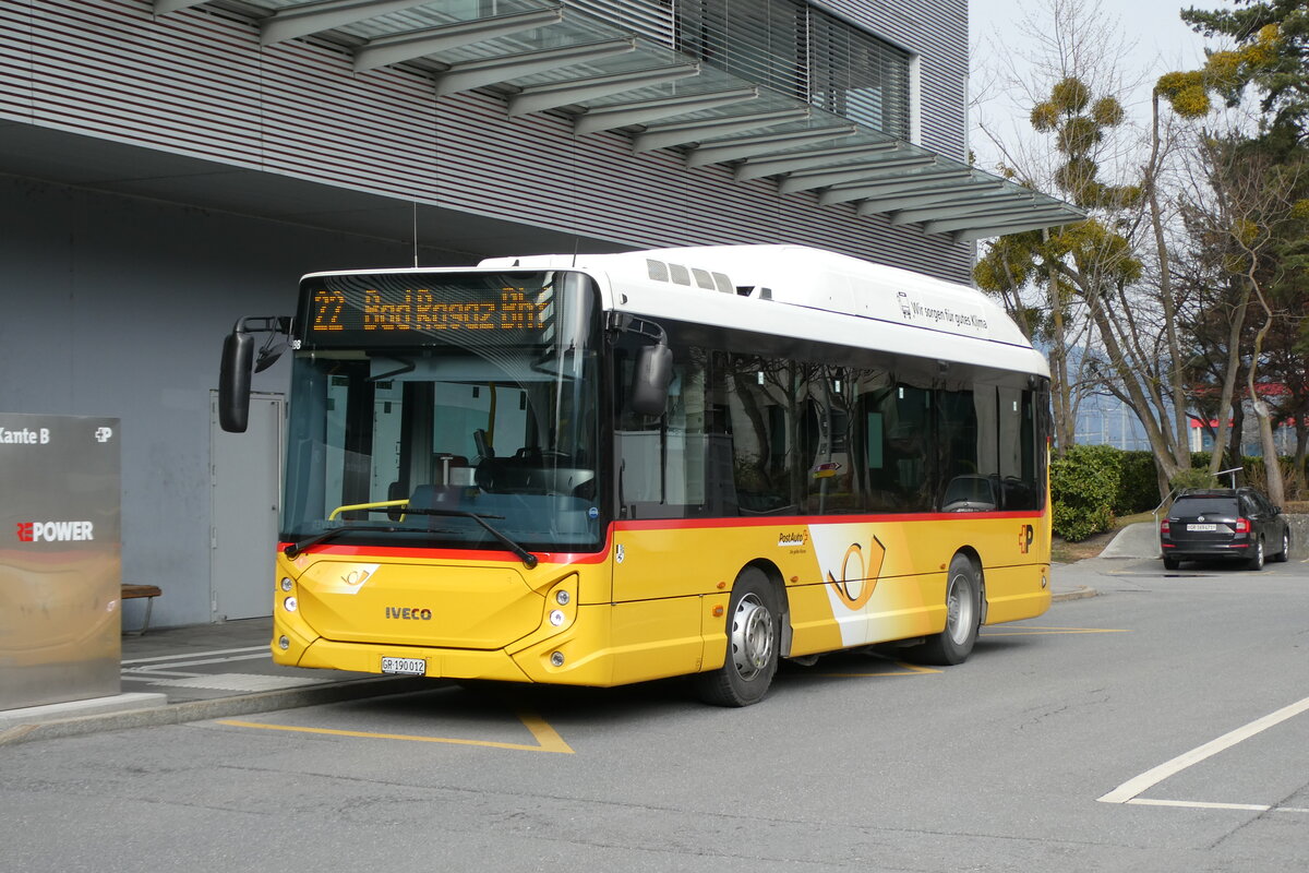 (284'885) - PostAuto Graubünden - GR 190'012/PID 11'898 - eHeuliez-Iveco (ex Gessinger, Bad Ragaz) am 14. Februar 2026 am 14. Februar 2026 beim Bahnhof Landquart