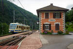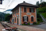 Die neuste Fotostelle bei Intragna: "Römerbrücke". Seit 1578 überbrücke im tiefen Tal bei Intragna die (nicht von den Römern) erbaute Ponte Romano die Melezza und bietet somit einen Zugang nach Rasa. Heute noch als Wanderweg genutzt, hat nun die FART den Niveaugleichen Übergang über die Gleise mit einem interessanten Brückenbauwerk ersetzt, welches einen guten Ausblick auf Centovalli-Bahn bietet. Im Bild: der FART ABe 4/8 47 als CEX 43 auf der Fahrt von Domodossola nach Locarno.