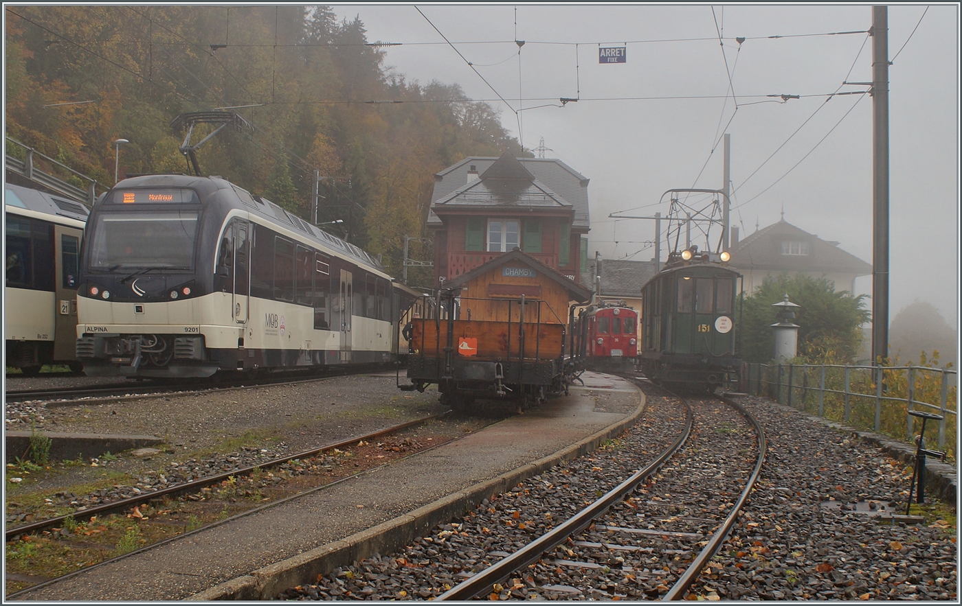 50 Jahre Blonay Chamby - MEGA BERNINA FESTIVAL: Der erste Zug des Mega Bernina Festivals wartet in Chamby auf die Weiterfahrt nach Montreux.