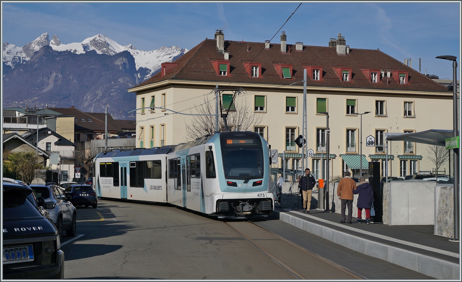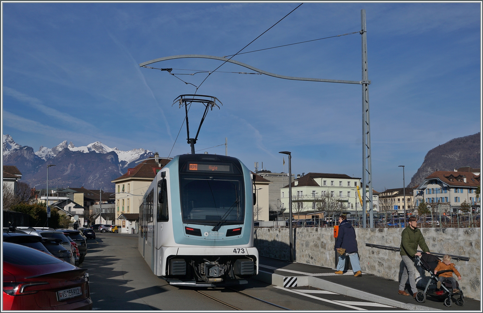 Oberhalb von Aigle schlängelt sich der Regionalzug nach Les Daiblertes durch die Weinberge.