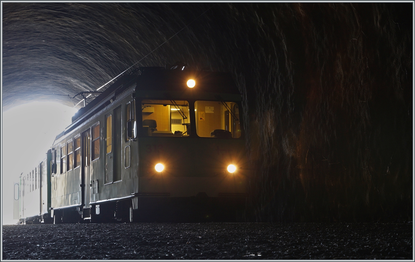 Der TPC A-L BDeh 4/4 302 und sein Bt 351 warten in Aigle auf die Abfahrt nach Leysin.