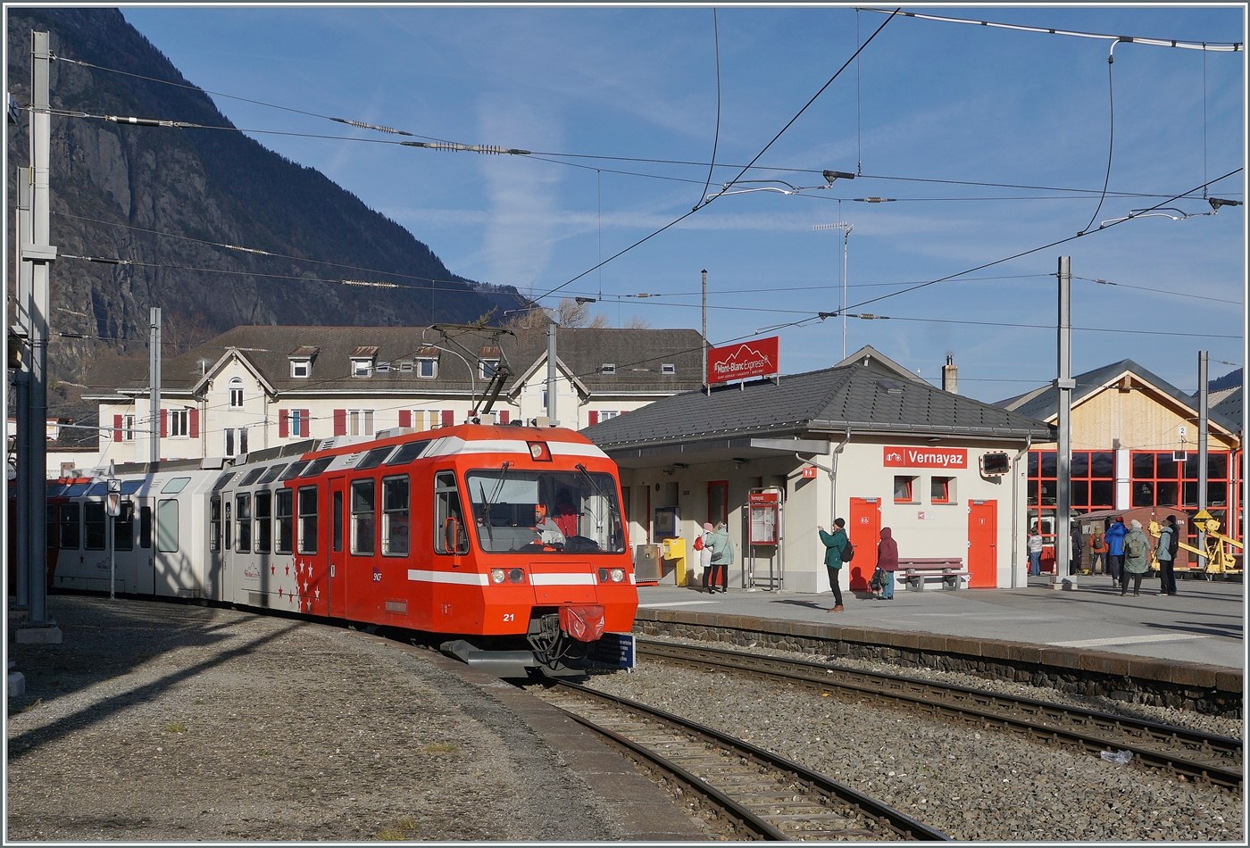 In Vernayaz M-C begegnet der TMR Beh 4/8 72 (UIC 90 85 838 072-4 CH-TMRSA) dem neuen TMR/SNCF Beh 4/8 (90 85 838 0891-4). Während letzterer als Regionalzug 18977 auf dem Weg von Vallorcine nach Martigny ist, werden mit dem neuen Beh 4/8 91 Testfahrten zwischen Vernayaz MC und Martigny unternommen.