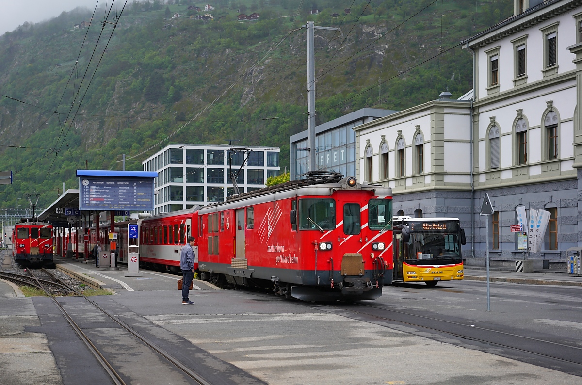 Zu meiner Überraschung wurde der R 328 von Zermatt nach Fiesch, hier bei Milachru, vom Deh 4/4 22 geführt.
