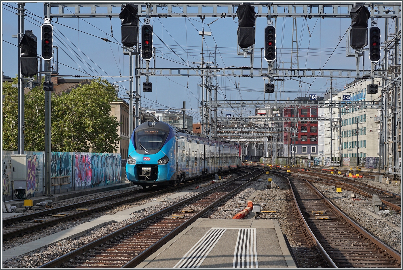 Von Coppet nach Annemasse: SNCF Triebzug 31545 mit dem Schloss Coppet im Hintergrund. 10.März 2023