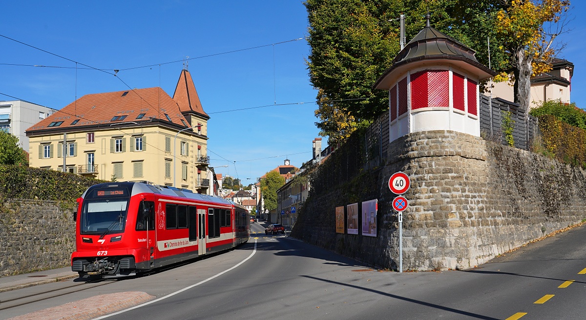 In Le Noirmont begegnen sich die beiden CJ ABe 2/6 633 und 631. Diese Triebwagen hätten mit der Inbetriebnahme der neuen ABe 4/12 verkauft werden sollen, doch durch unterbliebene Anpassungen musste die CJ nun die relativ neune "SURF" Be 4/4 abgeben.