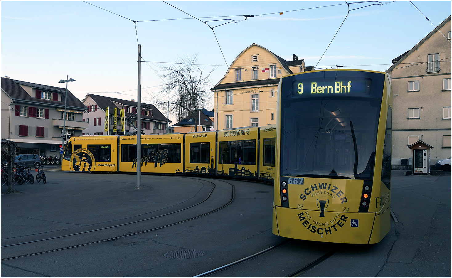 Der Berner Tramwagen 760 im Aufstieg von Worb nach Langenloh auf der Ueberlandlinie 6. 2.Dezember 2020