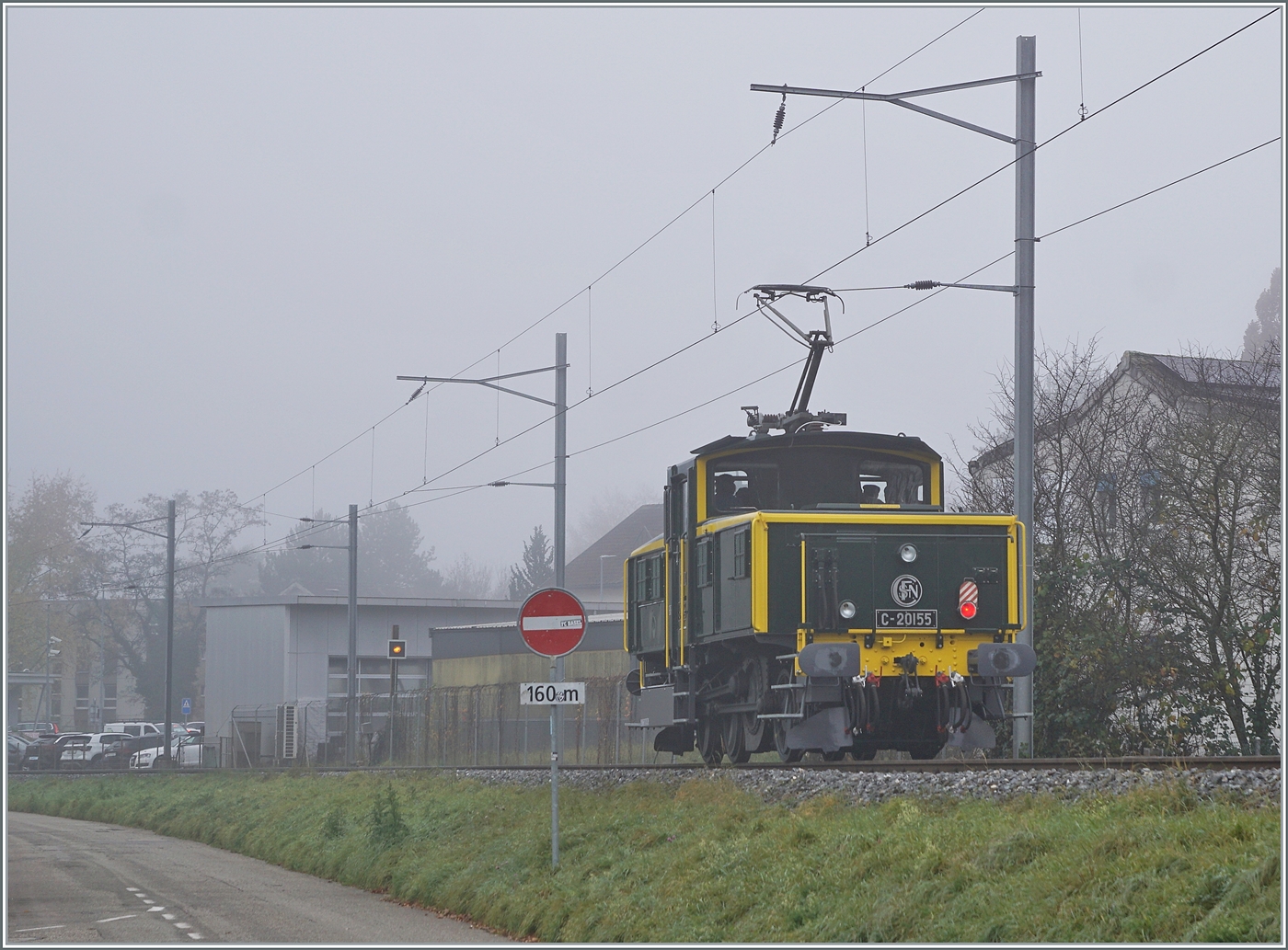 Die SNCF C 20155 UIC N° 97 85 1 932-0 (ex SBB Ee 3/3 II 16515, ex SNCF C 20155) des Verein "Team C-20155" kehrt als "Führerstandsmitfahrt" von der Klus zurück und konnte zwischen Thalbrücke und Balsthal fotografiert werden. 8. November 2025