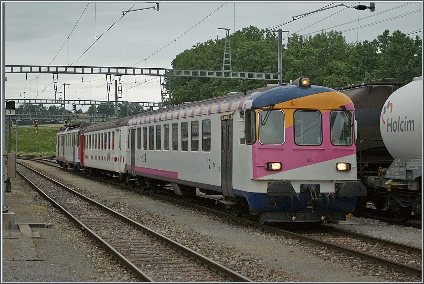 Im Archiv gefunden: mit dem Bt 375 erreicht der TPF Regionalzug von Bulle den Bahnhof von Romont. Das Bild entstand kurz vor der Umbaubedingen Einstellung der Strecke Ende Mai 2011 und damit auch dem Ende der ex MThB Fahrzeuge im Planeinsatz. Interessant: trotzt der damals eher schwacher Frequenz auf dieser Strecke verkehrt der Zug dreiteilig, und dies mit einem TPF Mittelwagen (wahrscheinlich EW I).