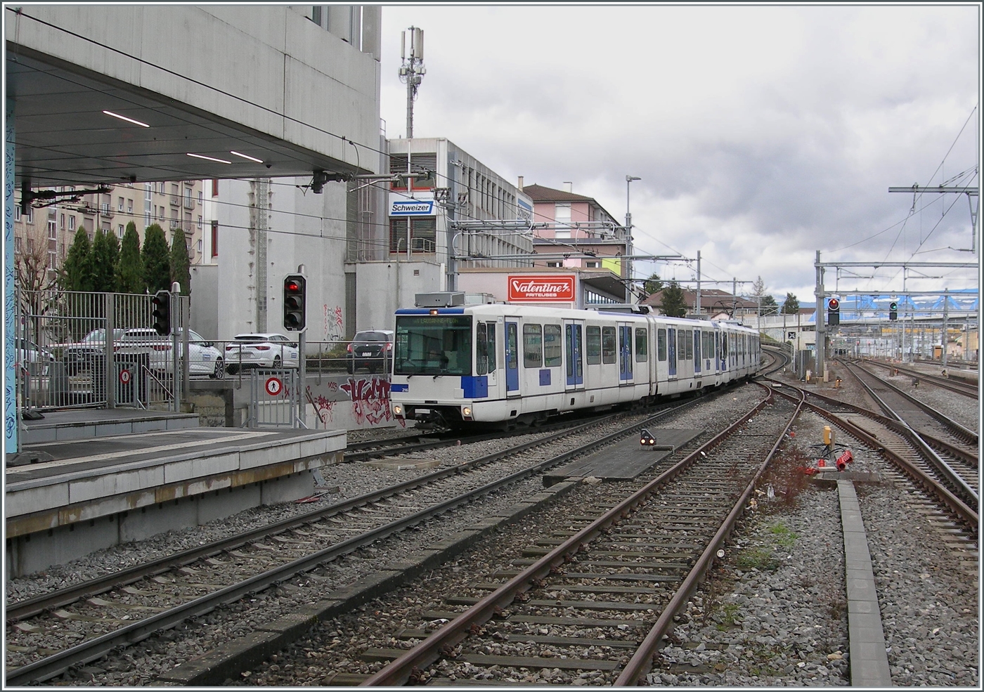 Der SBB RABe 511 028 verlässt Renens VD als S3 nach Allaman; links im Bild das Ausfahrsignal de TSOL (M1).