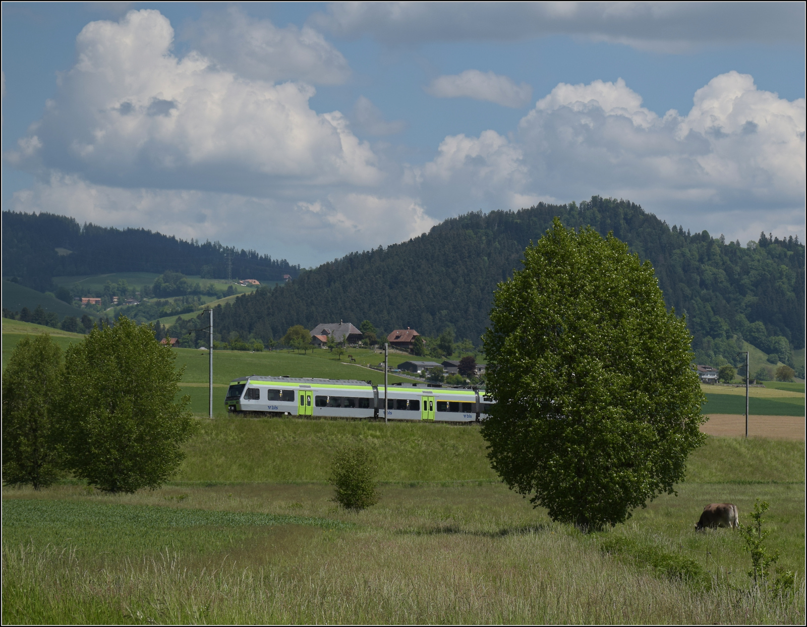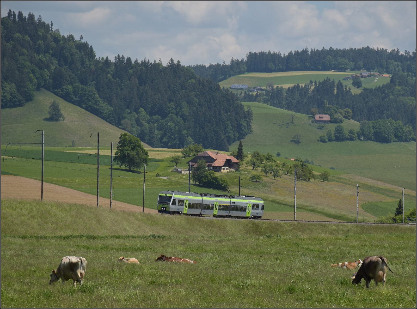 Ein Region Alps Nina ist bei Sembrancher auf dem Weg von Le Châble nach Martigny und fährt über die 370 Meter lange Sembrancher Brücke. Die Stammstrecke der M-O führt nach Orsière, beim Bau wohl das Fernziel Aosta/Italien im Visier, doch zum Bau der Mauvoisin Staumauer errichtete man die Zweistrecke nach Le Châble die im August 1953 in Betrieb ging und heute danke dem Wintersportort Verbier weit mehr Verkehr aufweist, als der Streckenast nach Orsière.