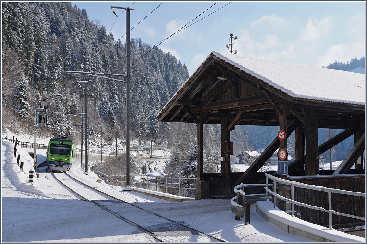 Kurz vor Trubschachen kommt ein BLS RABE 525 "NINA" ins Bild.