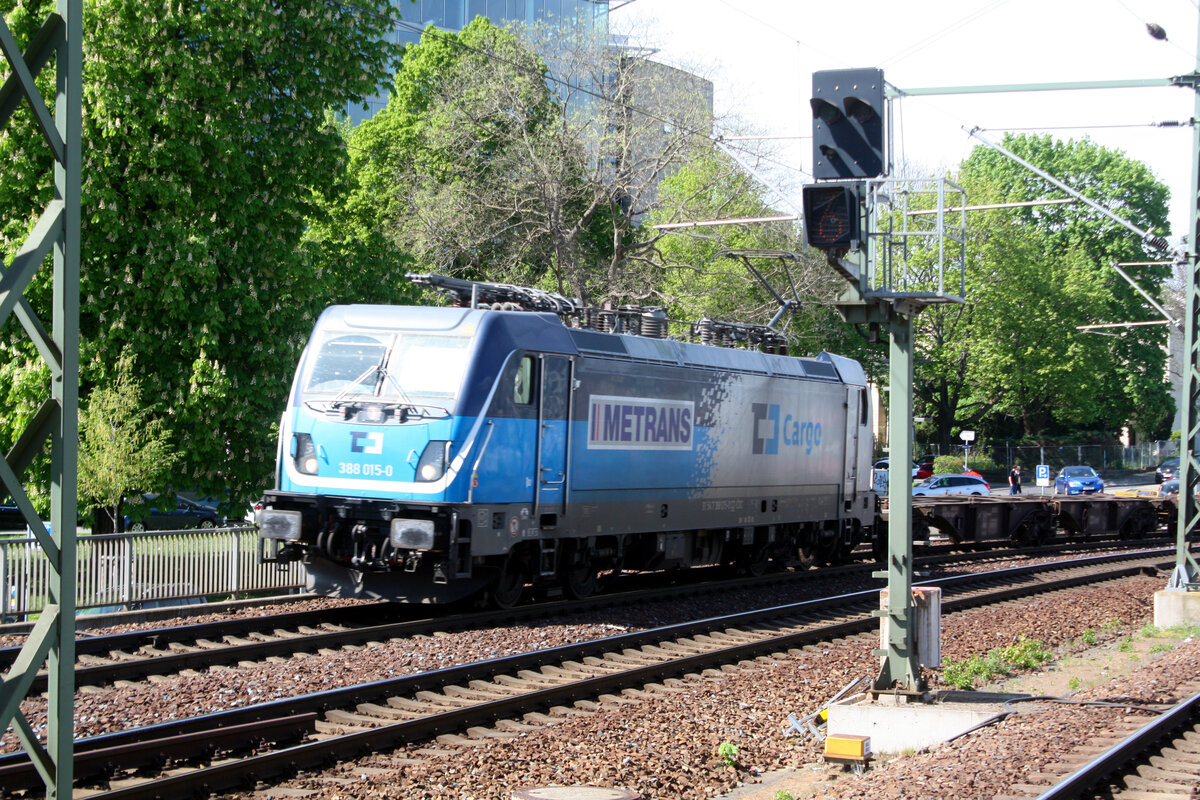 388 015 von CD Cargo / METRANS mit einen Güterzug bei der Durchfahrt im Bahnhof Dresden Hbf am 12.4.24