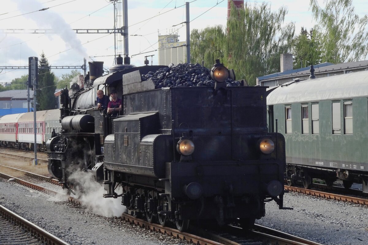 Als unser Zug am 22.09.2018 an der gut besuchten Abstellung nahe Budweis vorbei fährt, macht sich die Österreichische Dampflok 310.23 des Eisenbahnmuseums Strasshof auf den Weg in den Bahnhof von Budejovice (Budweis) um hier einen Sonderzug mit Besuchern des Bahnfestes abzuholen.