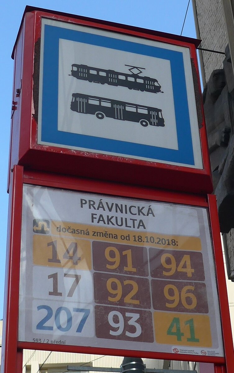 (198'518) - DPP-Haltestellenschild - Praha, Dejvická - am 19. Oktober 2018