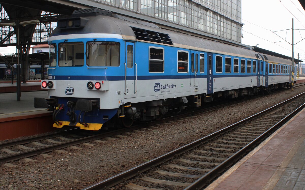Der Dieseltriebwagen ČD 854 019-7 „Babička“ (Oma) (CZ-ČD 95 54 5 854 019-7) hat am 22.11.2022, mit einem Regionalzug bzw. als  Esko Praha (S-Bahn Prag), Praha Masarykovo nádraží (Prag Masaryk Bahnhof) erreicht. Der Zug bestand aus der Komposition  ČD 854 019-7,  Bdtn756, ČD 854 und Steuerwagen ČD ABfbrdtn795
