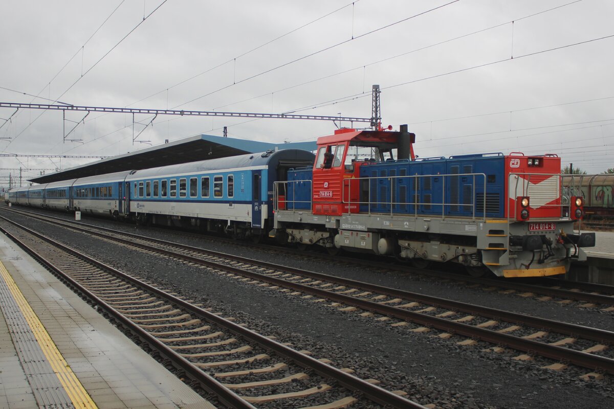 Am 12 Juni 2022 knöttert 712 217 mit der Leergarnitur von der Cyklohrady aus Praha hl.n. aus.