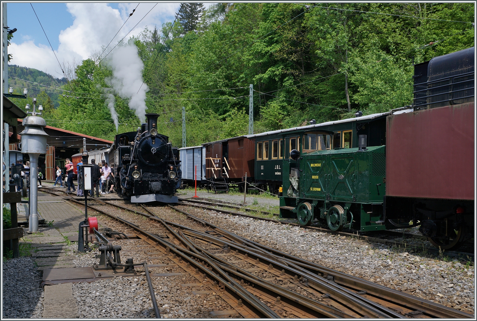 Als die BB G 4/4 81 der Blonay-Chamby Bahn etwas schielend aus dem Dépôt von Chaulin blinzelt, hatte sie ihre erste Probefahrt nach Blonay, schon hinter sich, dies fand am 16.8 statt und ich habe sie leider verpasst.